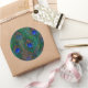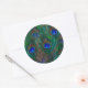 Pegatina Redonda Coloridas plumas de pavo real estilo Etching