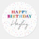 Pegatina Redonda Colorido Happy Birthday Custom Name Confetti