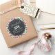 Pegatina de cumpleaños con un lindo patrón de macarones en muchos colores diferentes con un tenue patrón de puntos polka detrás. Texto personalizado escrito en blanco sobre un círculo negro.