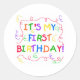 Pegatina Redonda Colorido texto es mi primer cumpleaños