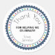 Gracias a los invitados de la fiesta de cumpleaños por ayudarlos a celebrar con estos pegatinas divertidos que cuentan con un moderno borde de vieiras, puntos de polka juguetones y texto de personalizable que dice: "Gracias por ayudarme a celebrar". Modifique los tres cuadros de marcadores de texto agregando sus propios sentimientos y nombres para crear una forma divertida de agradecer a sus invitados por celebrar el cumpleaños de su hijo. Perfecto para adjuntar a bolsas de regalo, bolsas de regalo, cajas de regalo y más, estos pegatinas ofrecen una forma divertida de mostrar su aprecio por el apoyo de sus invitados a hacer especial el cumpleaños de su hijo.