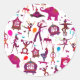 colorida caravana de circo con magician, elefante, bailarín, acróbata y varios personajes divertidos sobre fondo blanco