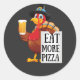 Coma más pizza, pegatinas divertidos de agradecimiento en turquía, un perfecto y gracioso pavo con una extraña señal y una cerveza en su ala.