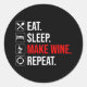 Pegatina Redonda Come. Duerme. Haz vino. Repite