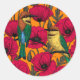 Pegatina Redonda Comedores de abejas y amapolas en naranja