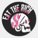 Rockeros punk, metaleros y anarquistas con ojo para la moda querrán Rock and Roll toda la noche en estas clásicas camisetas de "Comer los ricos" para hombres y mujeres de la extrema pobreza. La impresión de un diseñador rosa y negro representa el cráneo de los piratas con signos de dólar para los ojos y una actitud dura de arrogancia.
