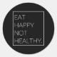Pegatina Redonda Comer comida feliz no saludable