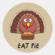 Pegatina Redonda Comer Pie Con La Turquía Del Día De Gracias