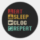 Pegatina Redonda Comer Sleep Clog Repetir Chicas divertidos de clau