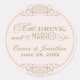 Monograma boda redondo favorece al pegatina con el tema "Comer, beber y estar casado" en oro antiguo y rosa pastel claro (se puede personalizar a un color diferente).
