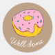 Bien hecho enseñando pegatina con Cute donut con ilustracion de hielo rosa. Para los amantes de los donut por todas partes y para un fiesta de donut! adecuado para un recurso docente pegatina.
