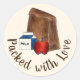 Pegatina Redonda Comida de la escuela Brown Bag con amor