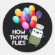 How Thyme Flies Funny Herb Pun presenta una botella de tomillo que vuela con globos de colores . Perfecto regalo de juego de palabras para la familia y los amigos que aman los juegos de hierba tima.
