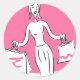 Dibujo caprichoso de una mujer llevando sus bolsas de compras. Después de todo, a las mujeres les encanta comprar. Imagen disponible en varios regalos y productos.