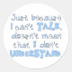 "Sólo porque no hablo, no significa que no entiendo". La voz de un niño con discapacidad no se escucha con tanta frecuencia. Escucha con tu corazón y te dirán mucho más de lo que podrías haber imaginado. Este diseño se ofrece en camisetas, tazas, gorras, imanes, regalos y mucho más.