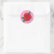 Pegatina Redonda Compromiso con rosas rojas y puntos rojos romántic