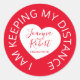 Compromiso de distancia social o evento boda pegatina de color rojo. Ayude a sus huéspedes a sentirse seguros y deje que otros se mantengan alejados de sus clientes más vulnerables y preocupados. El pegatina de advertencia de salud roja de código dice que ESTOY MANTENIENDO MI DISTANCIA más que puedes personalizar con tu propio evento de nombre de pareja o fecha de boda. También están disponibles posters e instrucciones coincidentes. Diseñado por www.mylittleedenweddings.com