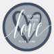 Con amor y tu nombre en un corazón lindo en un pegatina azul marino, estos pegatinas están listos para personalizar para dar regalos, favores, pegatinas de sobre y más.