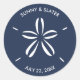 Pegatinas redondos de conchas de arena en azul marino y blanco náutico, con texto que se puede personalizar. Ideal como sello para sobres para boda, ducha, aniversario e invitaciones de cumpleaños, o como pegatina para favores y regalos.