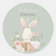 Dulce conejito conejo acuarela rosa pegatina personalizada con nombre y número del año de cumpleaños. Fondo verde salvia. Tan lindo como puede ser para todas tus necesidades de fiesta. Sellos de sobre, decoración, etc.
