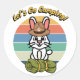 Pegatina Redonda Conejo Blanco gracioso quiere ir de campamento
