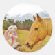 Pegatina Redonda Conejo blanco y caballo amarillo
