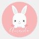 Pegatina Redonda Conejo conejo conejito rosado con nombre personali