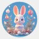 Pegatina Redonda Conejo Cute rodeado de decoraciones