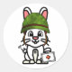 Pegatina Redonda Conejo Cuto Usando casco del ejército