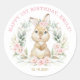 Pegatina Redonda Conejo de conejo conejo conejo con flores rosadas