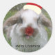 Pegatina Redonda conejo de nieve, Feliz Navidad