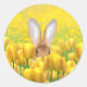 Conejo flamenco gigante de color flamenco escondido en los tulipanes amarillos ya sea cazando o escondiendo huevos de Pascua lindo conejito de Pascua pegatina