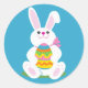Pequeño conejito blanco lindo sosteniendo un huevo de Pascua.