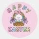 Pegatina Redonda Conejo de Pascua con cesta de huevos