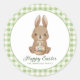 Pegatina Redonda Conejo de Pascua Cuadros Acuarela Verde