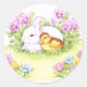 Pegatina Redonda Conejo de Pascua, Duckling y Flores