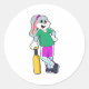 Pegatina Redonda Conejo en el críquet con murciélago de críquet