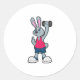 Pegatina Redonda Conejo en Fitness con Dumbbell