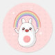Pegatina Redonda Conejo Feliz con Arcoiris