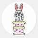 Pegatina Redonda Conejo gracioso saltando de un pastel