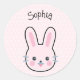 Pegatina Redonda Conejo rosa y puntos de polka de Kawaii