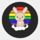 Pegatina Redonda Conejos dulces con conejo arcoiris para niños