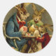 Pegatina Redonda conejos vintage de Pascua pintando huevos