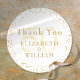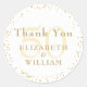 Confeti de polvo de oro de agradecimiento por el 50 aniversario, pegatina redonda clásica. Personalízala con tus nombres en letras doradas elegantes. Perfecta para sellar sobres o como pegatinas de favor. Diseñada por Thisisnotme©