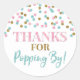 Pegatina Redonda Confetti azul rosado dorado gracias por comprar