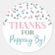 Pegatina Redonda Confetti azul rosado plateado gracias por comprar