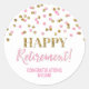 Pegatina de etiquetas de favores jubilatorios con un patrón de confeti rosa claro y oro.