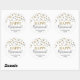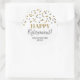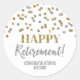 Pegatina de etiquetas de favores jubilatorios felices con patrón de confeti oro y plata.
