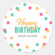 Pegatina Redonda Confetti Verde azulado rosado naranja Feliz cumple