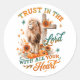 Un diseño pacífico y colorido con una escena otoño/otoño con una cruz de madera, calabaza, majestuoso león y flores otoño. El colorido texto inspirador dice: "Confía en el Señor con todo tu corazón". Este diseño está disponible en una amplia variedad de productos.